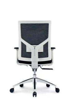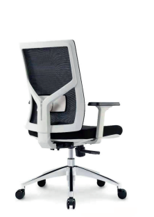 White glass fiber frame with fixed headrest Adjustable lumbar support Adjustable armrest Moulded foam Position lock mechanism Nylon casters Aluminum base